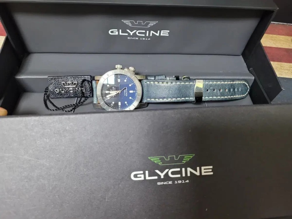 글라이신 오토 에어맨 월드타이머 블루 남자시계